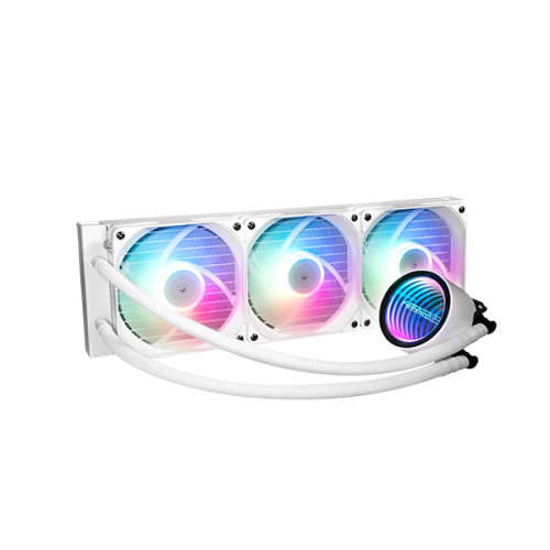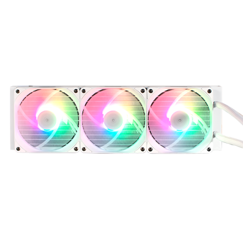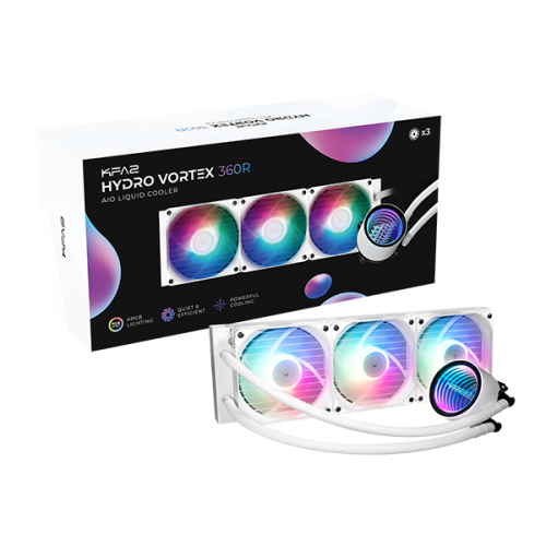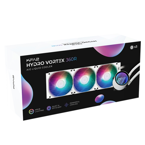 Featuring an infinity mirror design with ARGB light effect, the all-in-one liquid CPU cooler Hydro Vortex 360R which is equipped with a 360mm aluminum radiator, powerful water pump and triple 120mm fans offers exceptional thermal performance and cooling efficiency to the core of your computer system while operating at low noise level.