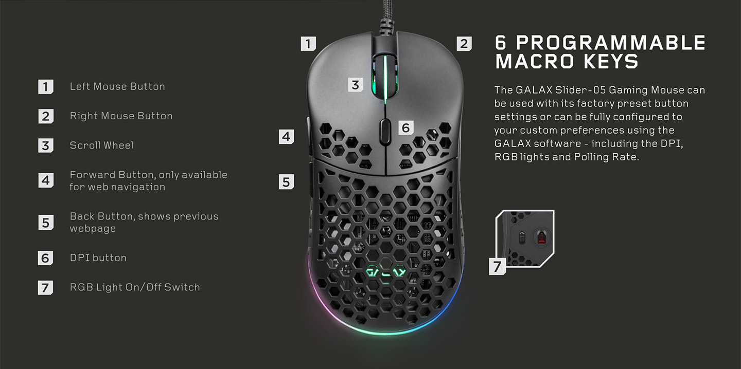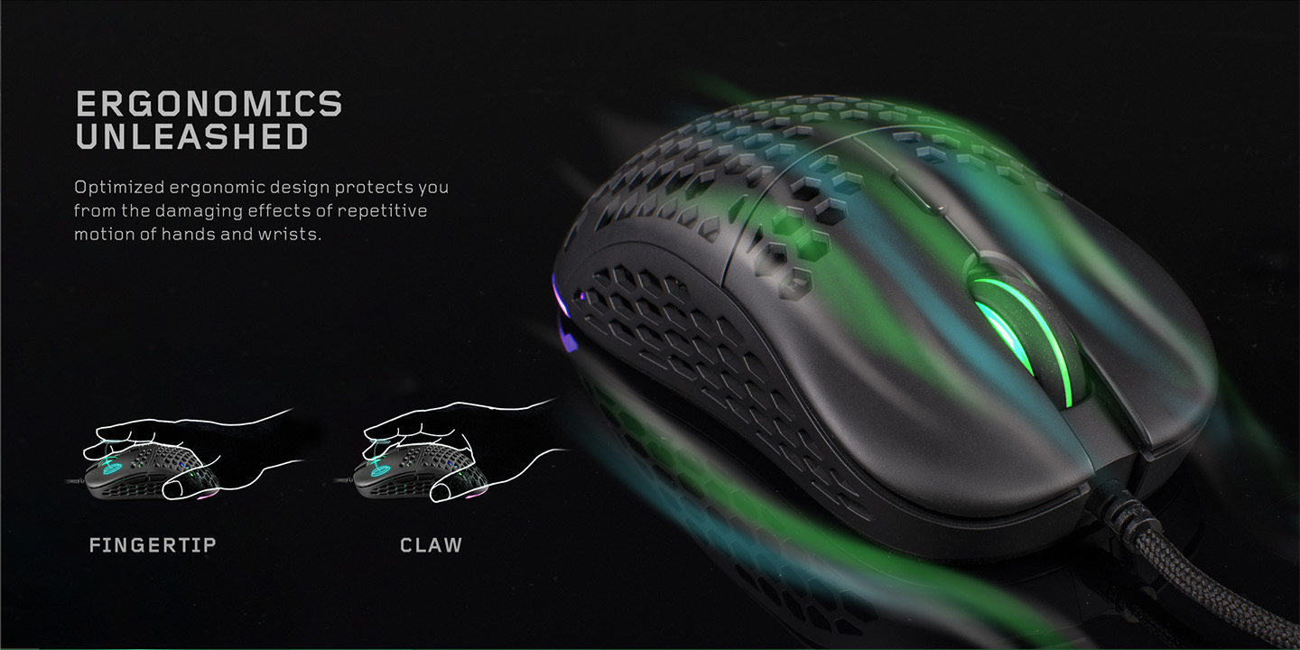 Optimized ergonomic design protects you from the damaging effects of repetitive motion of hands and wrists and the honeycomb design boosts the cooling effect right at your palms. 6 Programmable Macro Keys: With 6 different function, makes it easier to operate during the game. Adjustable up to 10000 DPI by software: With range of 1000/2000/3000/4000/6000/10000 DPI (by software)  1.8M length USB Braided cable: Braided Cord For Enhanced Durability.
