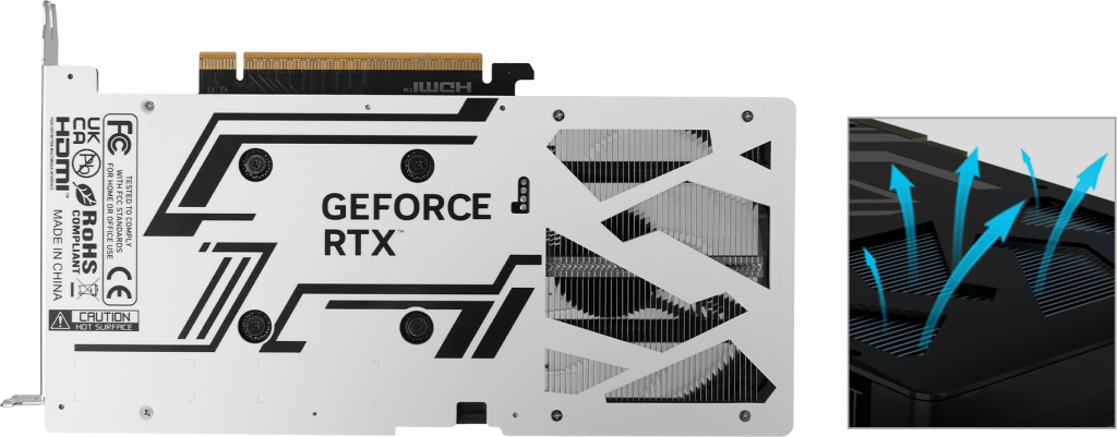 Affinés par des simulations aérodynamiques approfondies, les GPU KFA2 GeForce RTX 50 présentent un tout nouveau design thermiquement efficace. Avec 7 pales de ventilateur WINGS 3.0 plus grandes, la pression de l'air est améliorée. Les ventilateurs améliorés avec des pales en anneau améliorent également l'efficacité du refroidissement, ce qui permet de refroidir rapidement les composants et d'augmenter la durabilité.
