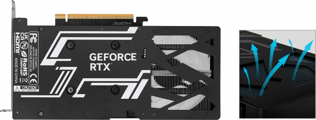 Affinés par des simulations aérodynamiques approfondies, les GPU KFA2 GeForce RTX 50 présentent un tout nouveau design thermiquement efficace. Avec 7 pales de ventilateur WINGS 3.0 plus grandes, la pression de l'air est améliorée. Les ventilateurs améliorés avec des pales en anneau améliorent également l'efficacité du refroidissement, ce qui permet de refroidir rapidement les composants et d'augmenter la durabilité.
