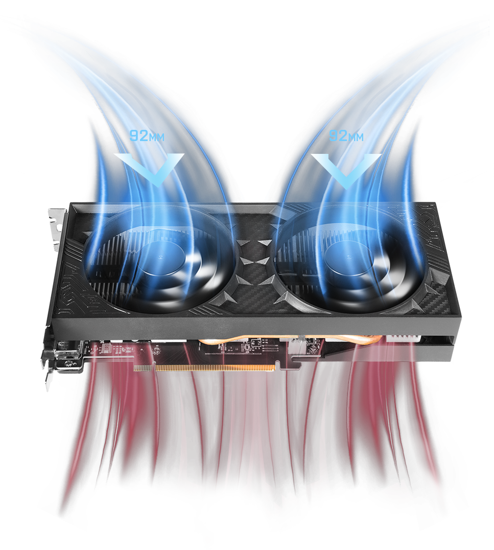 Mechanizm zatrzymywania wentylatorów, który monitoruje zarówno temperaturę GPU, jak i pamięci, inteligentnie włącza/wyłącza wentylatory, zapewniając idealną równowagę między hałasem a wydajnością.